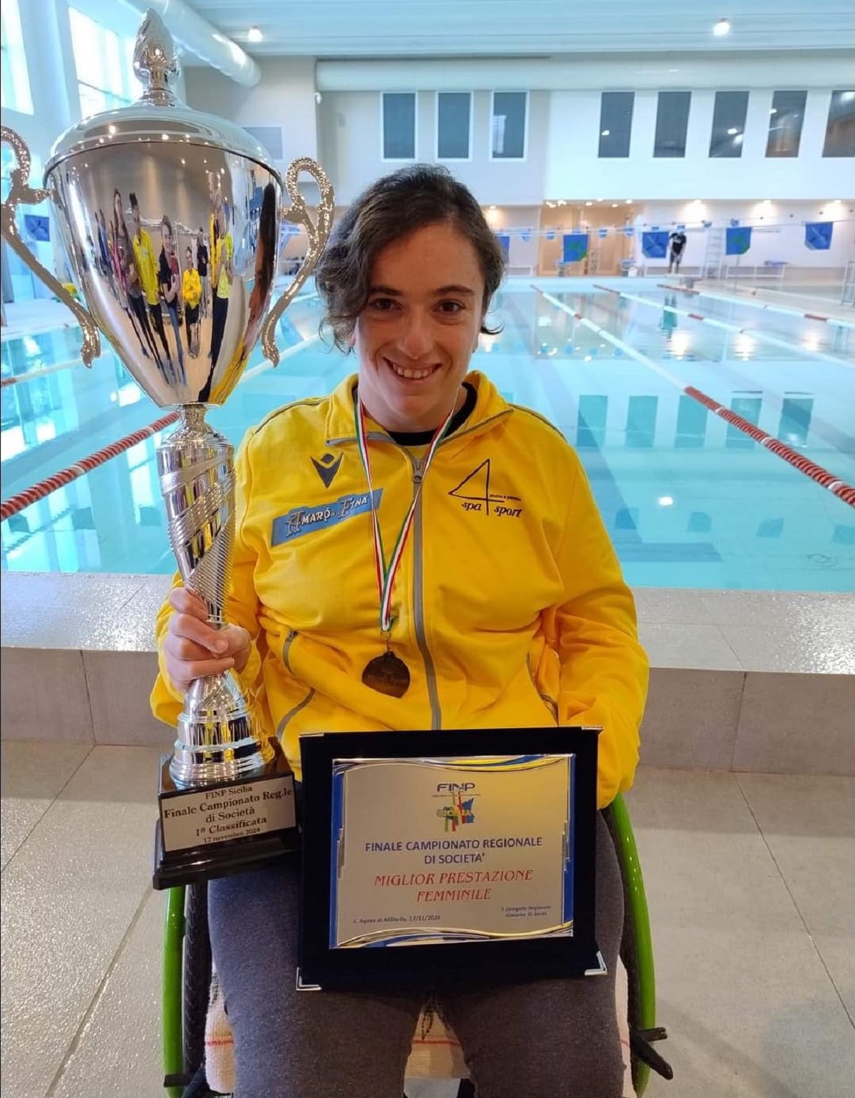 "Fra gli atleti promozionali - continua Aurelio Scebba - in gara Paolo Di Paola e Diego Lopez, entrambi primi nei 100 stile libero e 100 dorso. La migliore prestazione maschile in questa giornata è stata registrata da Davide Giglio nei 100 stile libero S14 dell'Asd il Sottomarino Palermo, mentre la migliore prestazione femminile è stata registrata dalla nostra atleta Denise Fresta nei 50 dorso S4, già detentrice del nuovo record italiano Assoluto in vasca da 25 metri nei 150 metri SM4. Dopo quest'ultima fase del campionato la 4Spa Sport si laurea così società campione regionale 2024, per il 2° anno consecutivo".