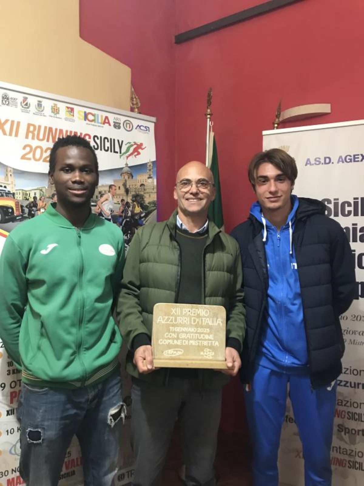 Goodluck Osaro, il prof. Salvatore Dell'Aquila e Luca Cavazzuti (Siracusatletica)