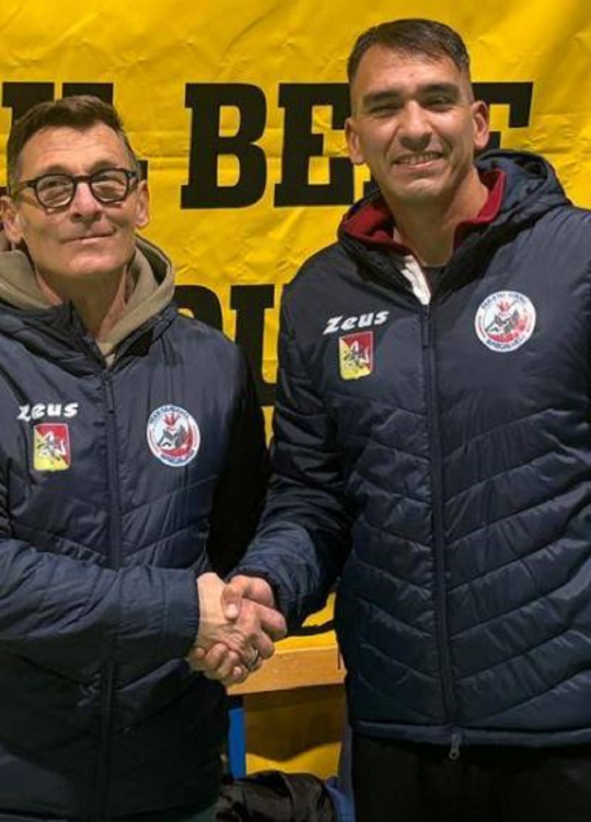 Il presidente del Team Handball Mascalucia Giuseppe Gerratana e il nuovo arrivato Zungri