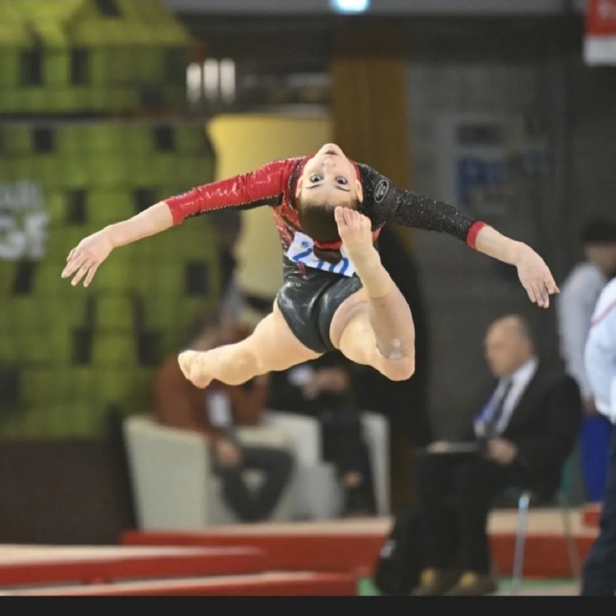 Sofia Tomba, 1° anno seniores in prestito dalla società Roma 70 Ginnastica, si è distinta al corpo libero (11,650), ha fatto benissimo al volteggio (12,750) e alla trave ha chiuso con 11,050.
