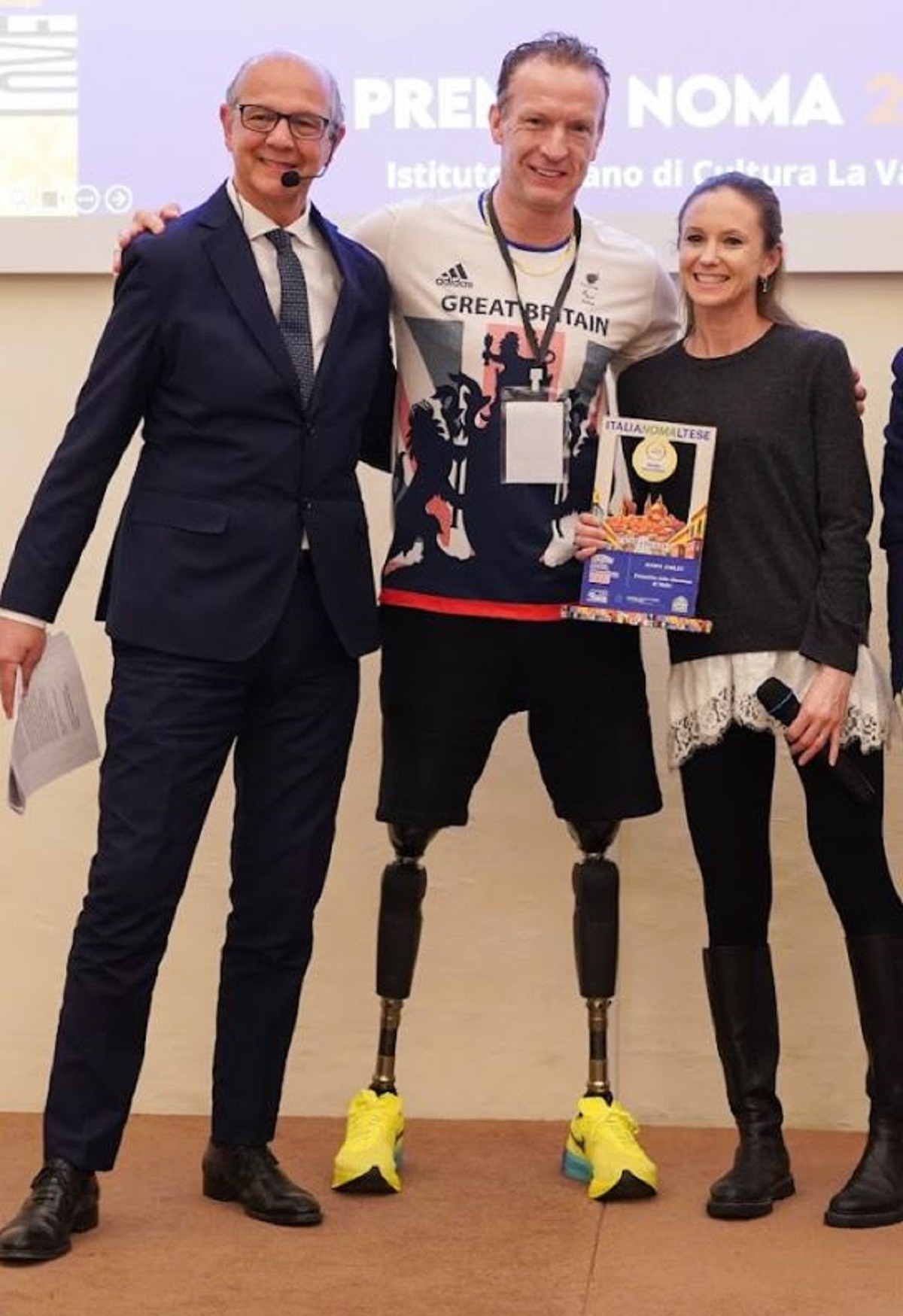 I collega Nino Randazzo competente "voce" della Running Sicily, Richard Whitehead e Jemima Farley