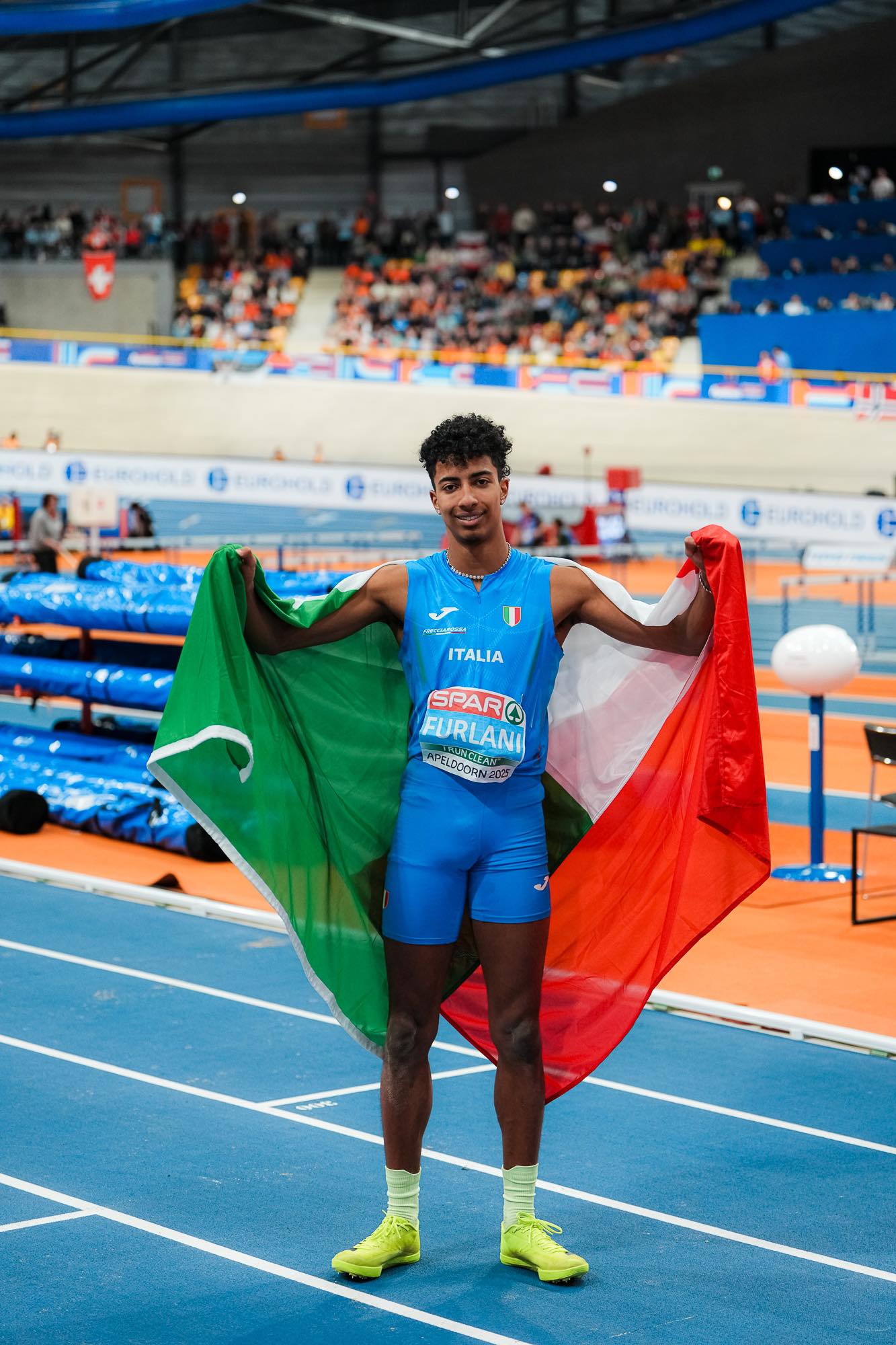 L'Italia ha fatto festa ieri ad Alpedoorn in Olanda per la prima medaglia vinta nel lungo da Mattia Furlani con 8,12 ad un solo centimetro dall'oro vinto dal bulgaro Bozhidar Saraboyukov (8,13) e per il ventenne di Rieti si tratta del primo podio internazionale del 2025 dopo aver vinto nel 2024 il bronzo ai Giochi di Parigi e doppio argento ai Mondiali indoor di Glasgow e agli Europei all’aperto di Roma.