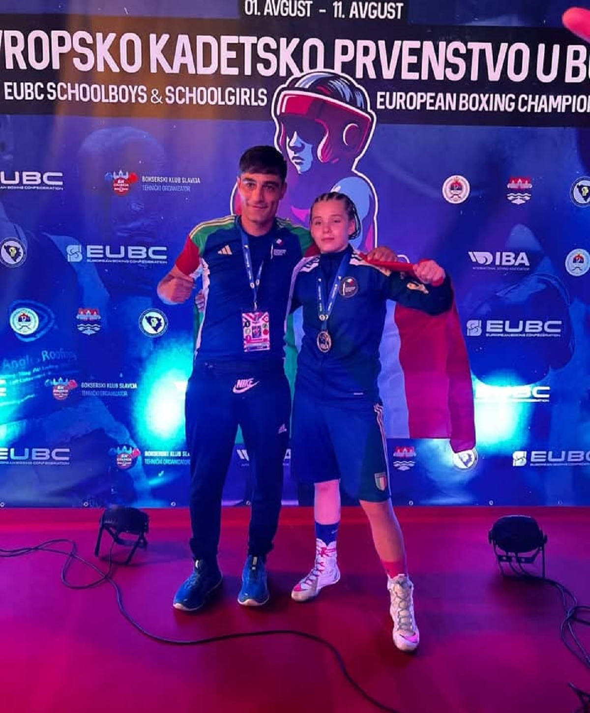 Sul podio in Ungheria con al collo il bronzo, la palermitana Giorgia La Rosa allieva alla Sicula Boxe Team del maestro Rosolino Cacopardo e il siracusano Samuele Miceli allievo alla Pugilistica Dresda del mitico maestro Tanino Dresda.