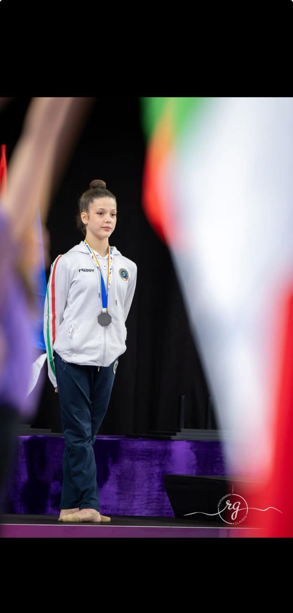 Nel gruppo azzurro in luce l'etnea Enrica Marletta allieva alla Gymnasium Ginnastica Gravina dell'allenatrice Tiziana D'Arrigo. La formidabile "farfalla" etnea, classe 2011, alle clavette è stata tra le migliori in gara evidenziando dinamismo e controllo. Nella final eight Enrica Marletta ha chiuso con al collo una prestigiosa medaglia d’argento con il personale di 24.217 dietro alla ginnasta di casa, la romena Patricia Stanciu, prima con 24.300, e davanti all’atleta del Lussemburgo, Paris Grass, bronzo con 23.700;