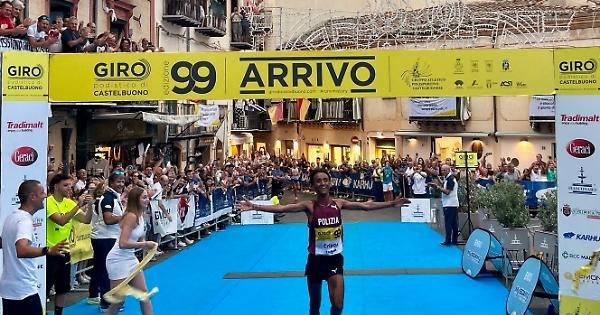 Dopo 36 anni il cielo di Castelbuono si tinge d’azzurro. Oggi a vincere l’edizione numero 99 del Giro di Castelbuono, la corsa più antica d’Europa è stato il fondista italiano Yeman Crippa capace di interrompere il dominio straniero 36 anni dopo l’ultimo successo ottenuto nel 1987 da Salvatore Bettiol. Un trionfo davanti a migliaia, ma migliaia di spettatori che hanno affollato Castelbuono per assistere ad un evento straordinario, oggi si è infatti scritto una pagina di storia dell’atletica e del Giro di Castelbuono per la gioia degli organizzatori del Gruppo Atletico Polisportivo Castelbuonese diretto da Antonio Castiglia.