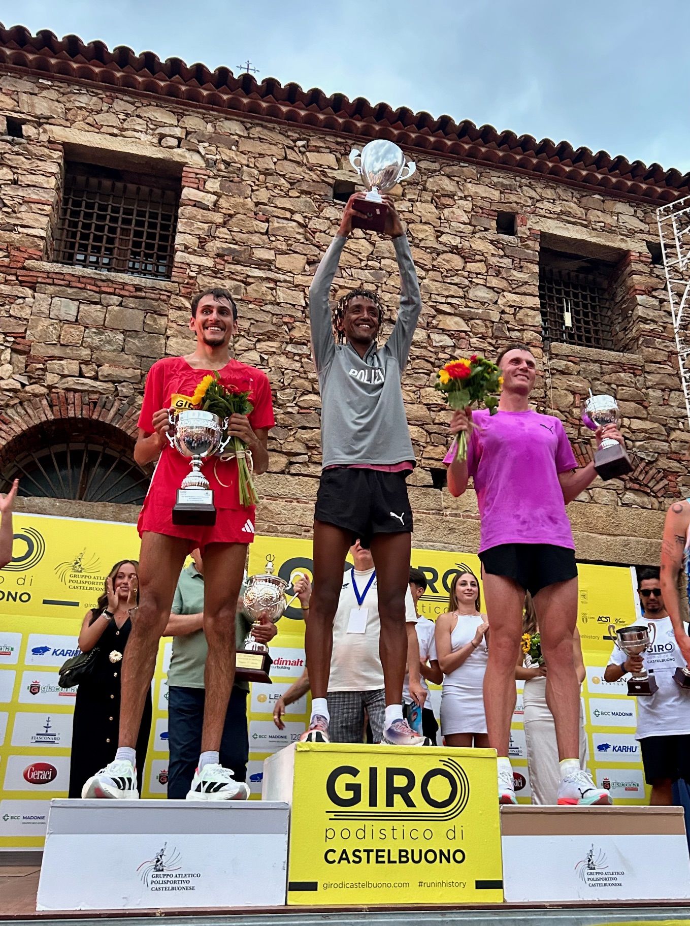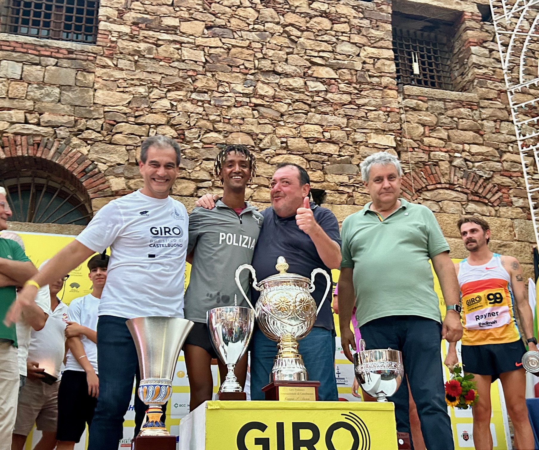 Yeman Crippa erede designato di una leggenda vivente del fondo siciliano come Totò Antibo al quale ha tolto i primati italiani di 5000 e 10000, oggi è diventato siciliano d’adozione lanciato letteralmente dal pubblico di Castelbuono in testa il sindaco Mario Cicero e lo sportivissimo Fausto Fiasconaro che l’ha incitato per tutti i 11,270 km della gara con un tifo infernale che ha caricato l’azzurro che ha staccato grandi avversari di una edizione memorabile del Giro di Castelbuono. Per entrare nella storia del fondo mondiale Yeman Crippa si è infatti superato visto che ha battuto in 34’16” il britannico Emile Cairess, già terzo al Giro nel 2023 e 4° nella maratona ai Giochi di Parigi 2024, che ha chiuso in 34’26” pagando cari gli strappi sugli strappi della dura salita di Via Mario Levante di un Crippa scatenato. Al terzo posto il norvegese Sondre Moen (34’39”) ex detentore del record europeo di maratona e 2° al Giro nel 2019 e 4° l’australiano Jack Rayner (35’29”) davanti all’azzurro Alessandro Giacobazzi (36’09”), lo spagnolo Carlos Mayo (36’23”); il burundiano Luis Intunzinzi (36’28”) e il modicano Giuseppe Gerratana (36’49”) primo dei siciliani e ancora una volta nella “top ten “ del Giro.