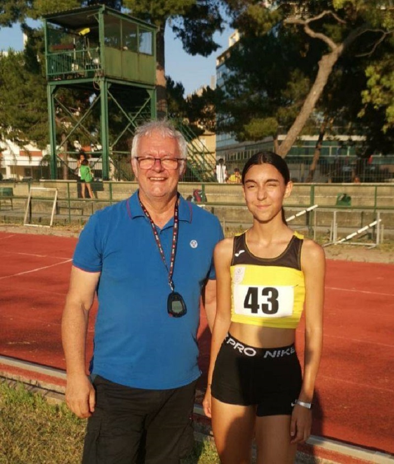 Il prof. Pasquale Aparo con Daria Brancaleone capace quest'ano di migliorare il record regionale ragazze sui 300 piani in 43"21(Trinacria Sport Solarino)