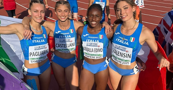 Trionfa la staffetta femminile azzurra nella 4x100 agli Europei U.20 di atletica leggera a Tampere. Alice Pagliarini, Elisa Valensin, Margherita Castellani, Kelly Doualla, esplosiva nell’ultima frazione, hanno