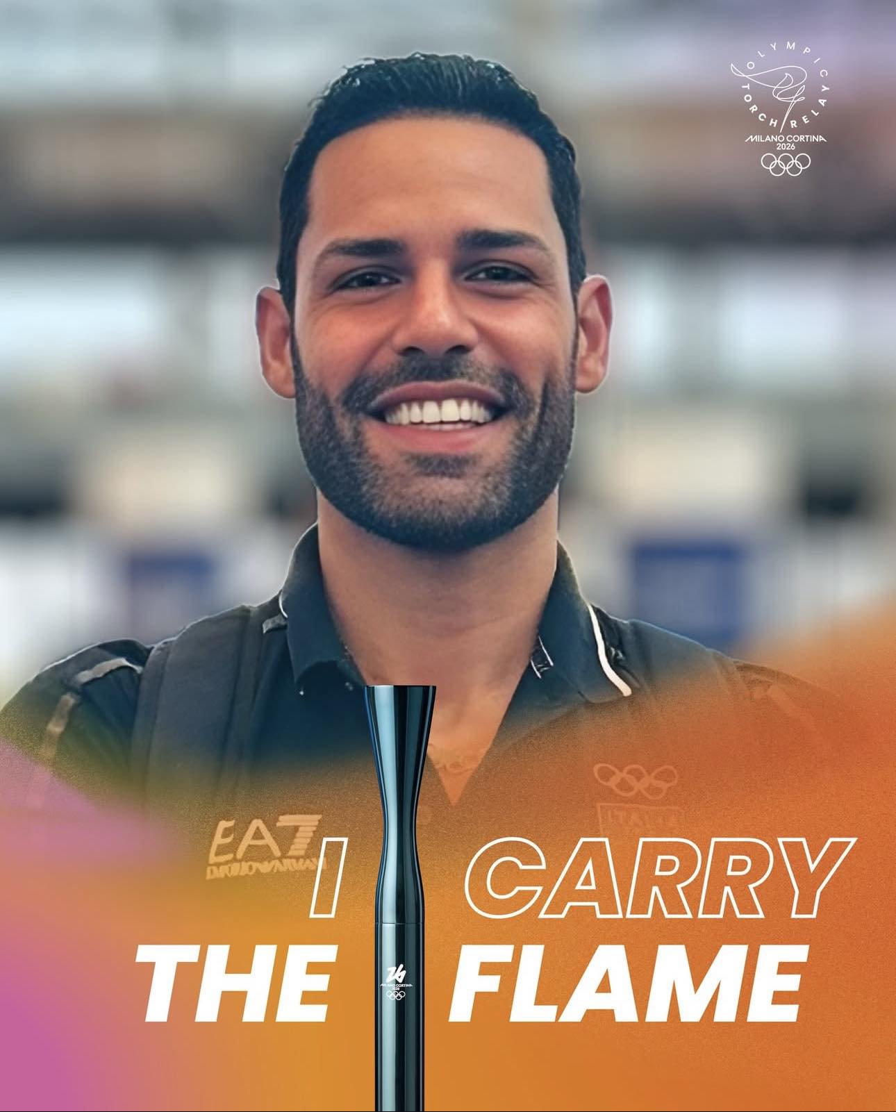Il campione olimpico Daniele Garozzo tedoforo nella sua Acireale