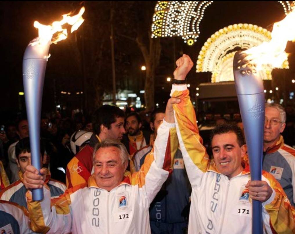 Totò Antibo e l'indimenticabile Candido Cannavò, tedofori nel 2005 a Palermo del Viaggio della Fiaccola Olimpica dei Giochi Invernali di Torino 2006