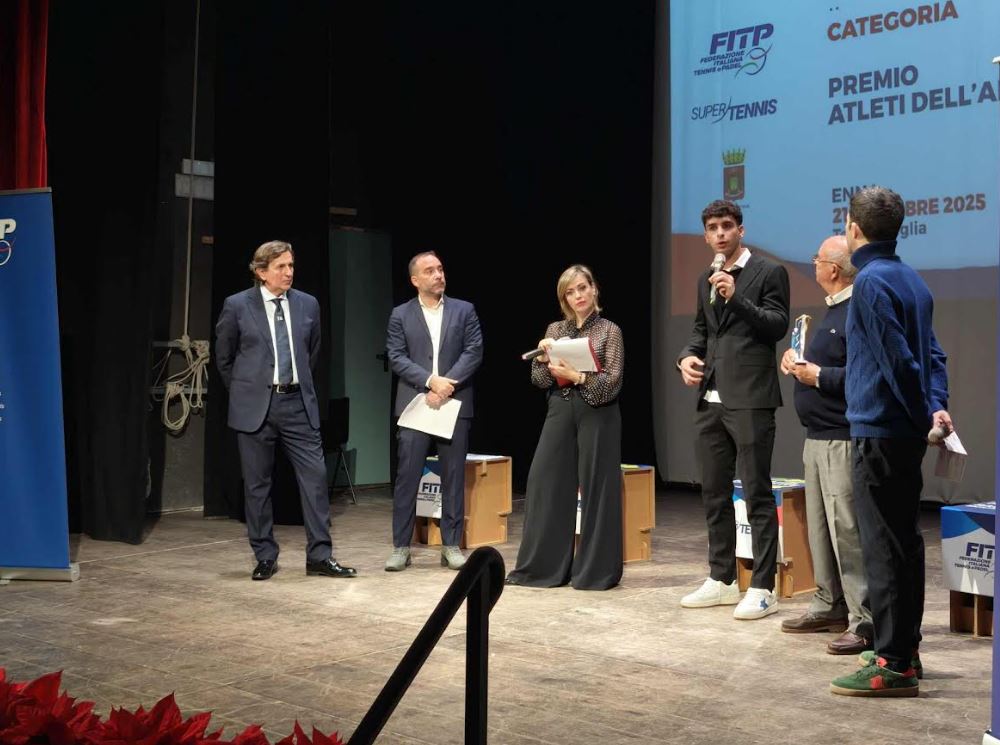 Una festa, una grande festa per fare accendere i riflettori su tutti gli straordinari protagonisti della stagione della Fitp Sicilia, la federazione che raccoglie le quattro discipline di tennis, padel, beach tennis e pickleball. Stamattina sul palco dello splendido Teatro "Francesco Paolo Neglia" di Enna, due ore e mezza di premi e applausi e tanti momenti emozionanti e di commozione in occasione della tradizionale "Festa delle Racchette Siciliane 2025", arrivata alla 16ª edizione, organizzata dalla Fitp Sicilia presieduta da Giorgio Giordano.