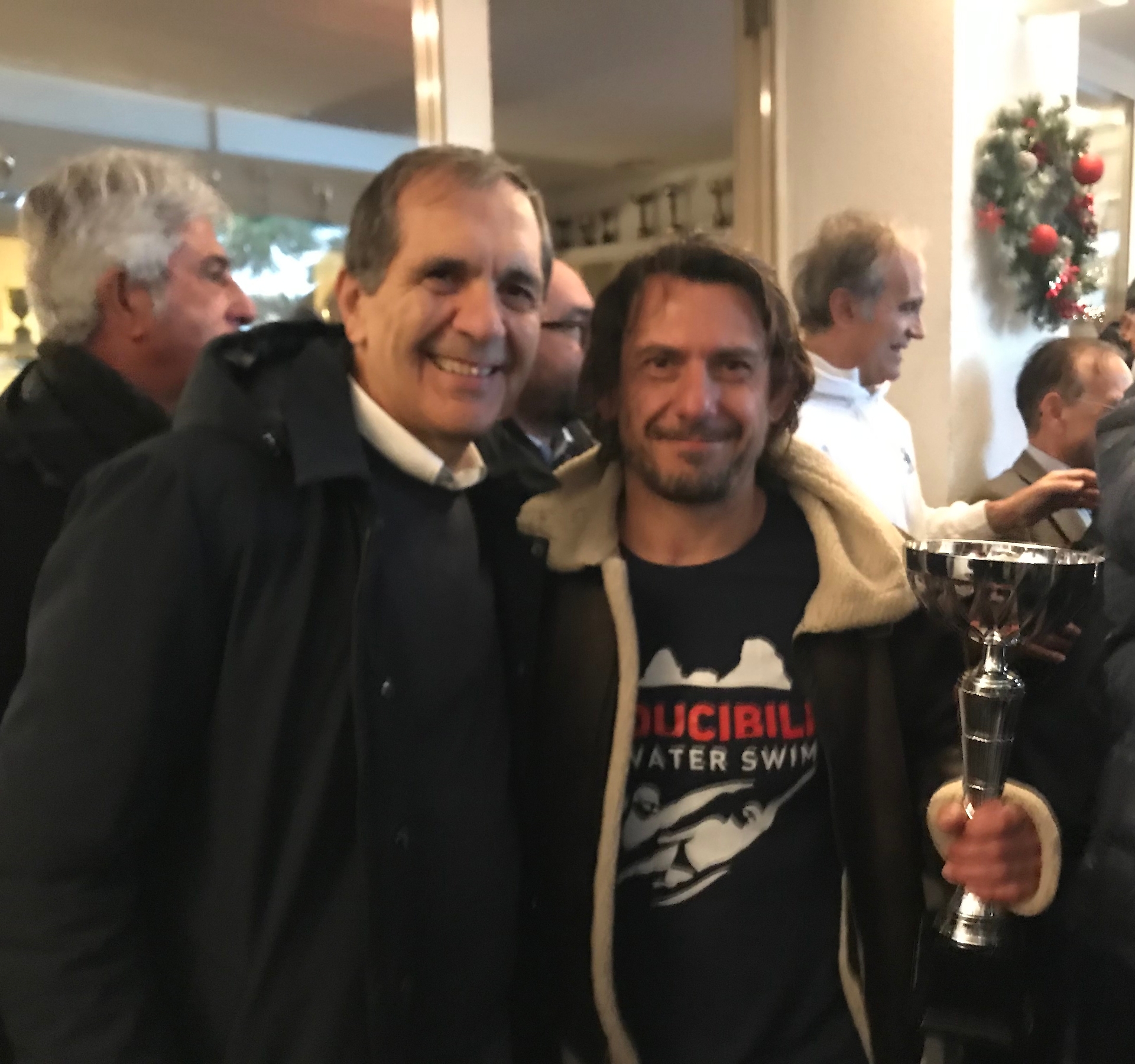 Sergio Parisi in qualità di presidente della Fin Sicilia ha poi consegnato una targa al mitico Antonio Aventaggiato per la grande passione che negli anni ha messo per organizzare le gare della San Silvestro a Mare insieme al Gruppo Giudici Gara della Fin come sempre oggi impeccabile.