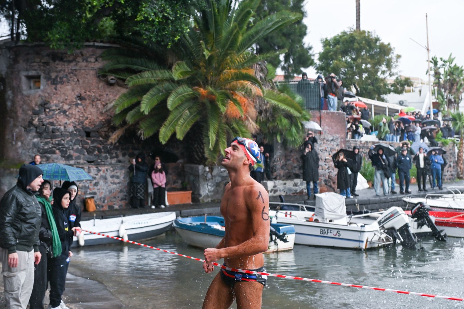 La pioggia non ha spaventato gli oltre 120 temerari che si sono tuffati nelle acque del Porticciolo di Ognina per dare vita all'edizione numero 64 della San Silvestro a mare, la classica gara di fine anno che dal 1960 si svolge nel capoluogo etneo sui 70 metri che dividono il molo del Circolo Canottieri Jonica dalla spiaggetta per salutare in maniera speciale l'anno che finisce. A vincere per il quarto anno consecutivo è stato il pallanotista catanese Riccardo Torrisi, classe 2003, capace di vincere la concorrenza con un finale infuocato dove in rimonta si è messo davanti a tutti passando dallo stile libero al dorso e alla rana e alla fine l'ha spuntata.