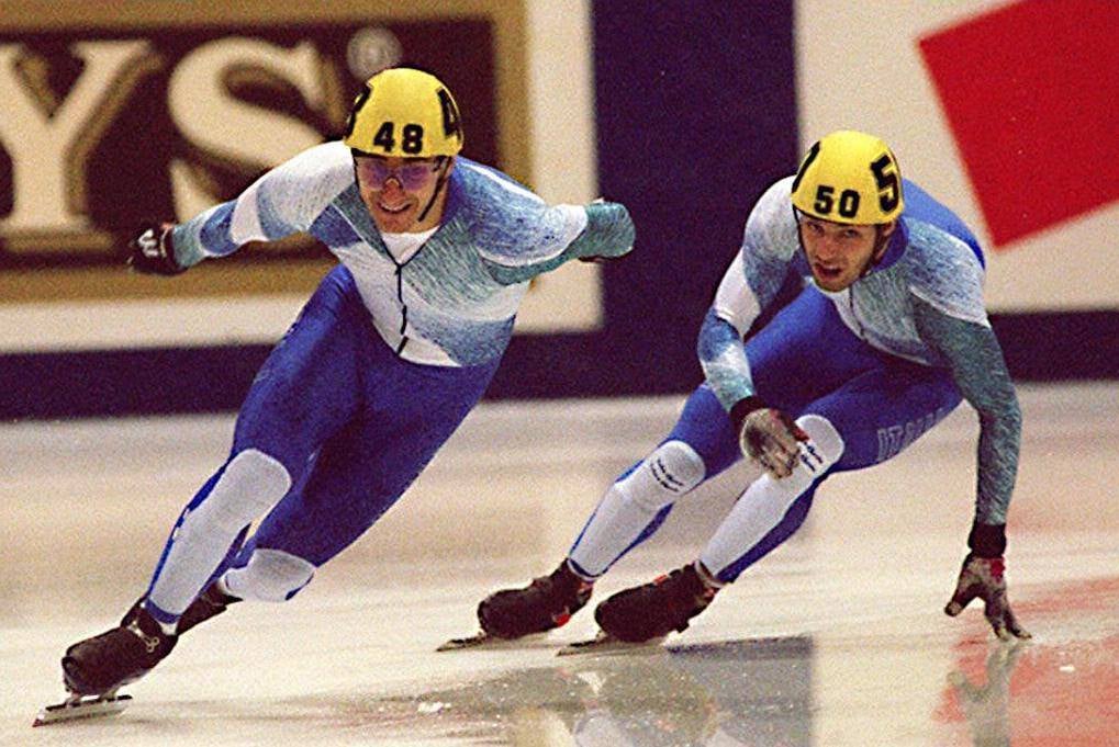 Il catanese Orazio Fagone (a sinistra) in azione ai Giochi di Lillehammer 1994 oro nella staffetta di short track