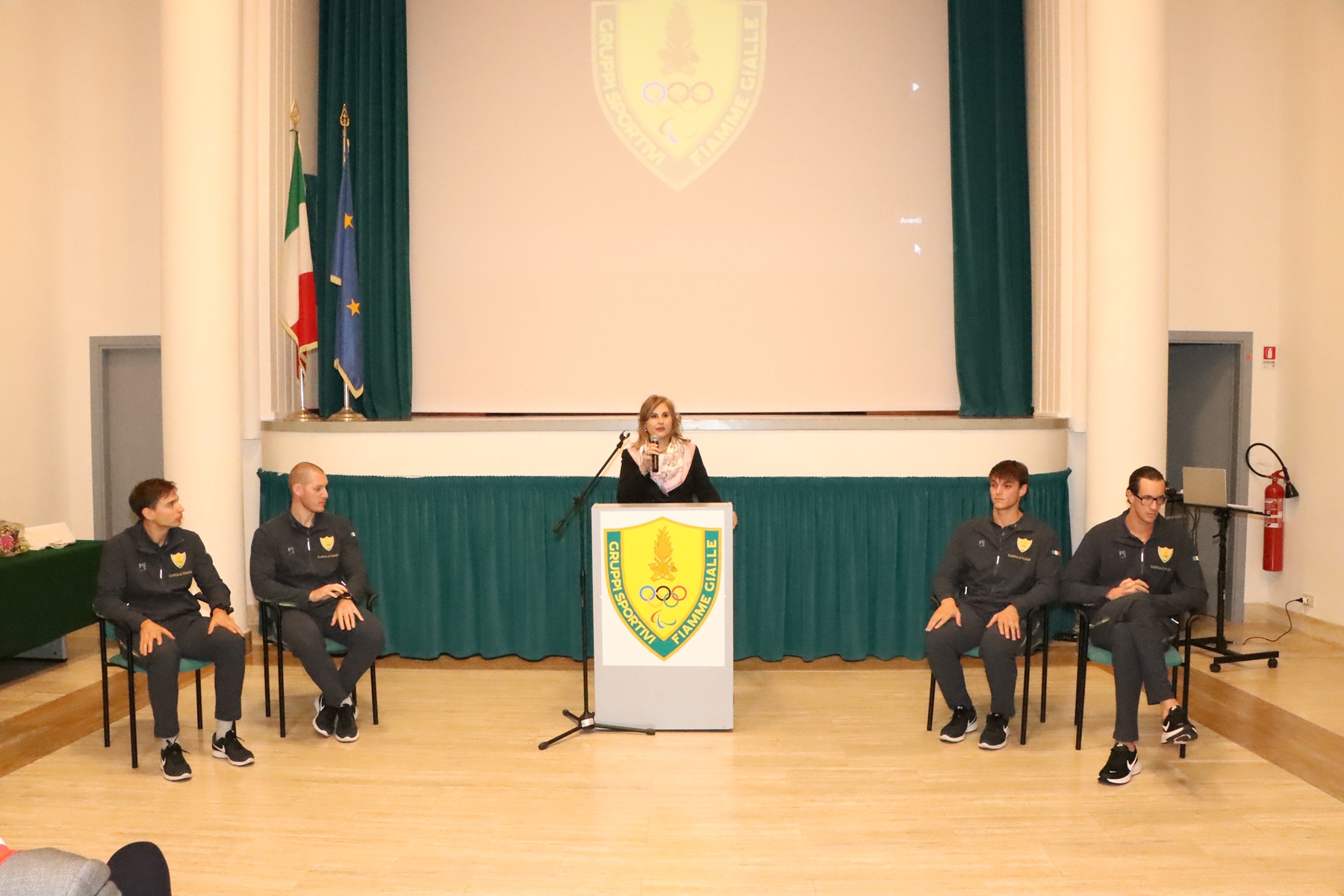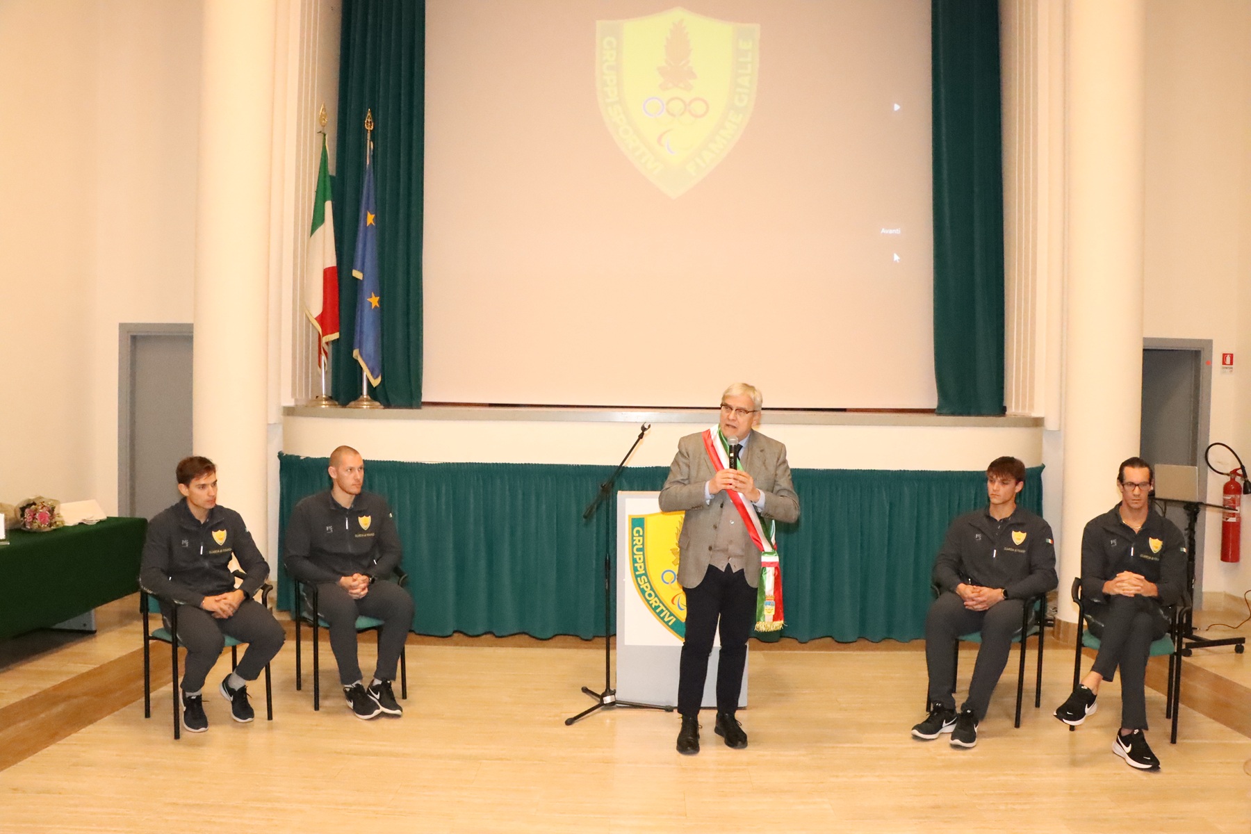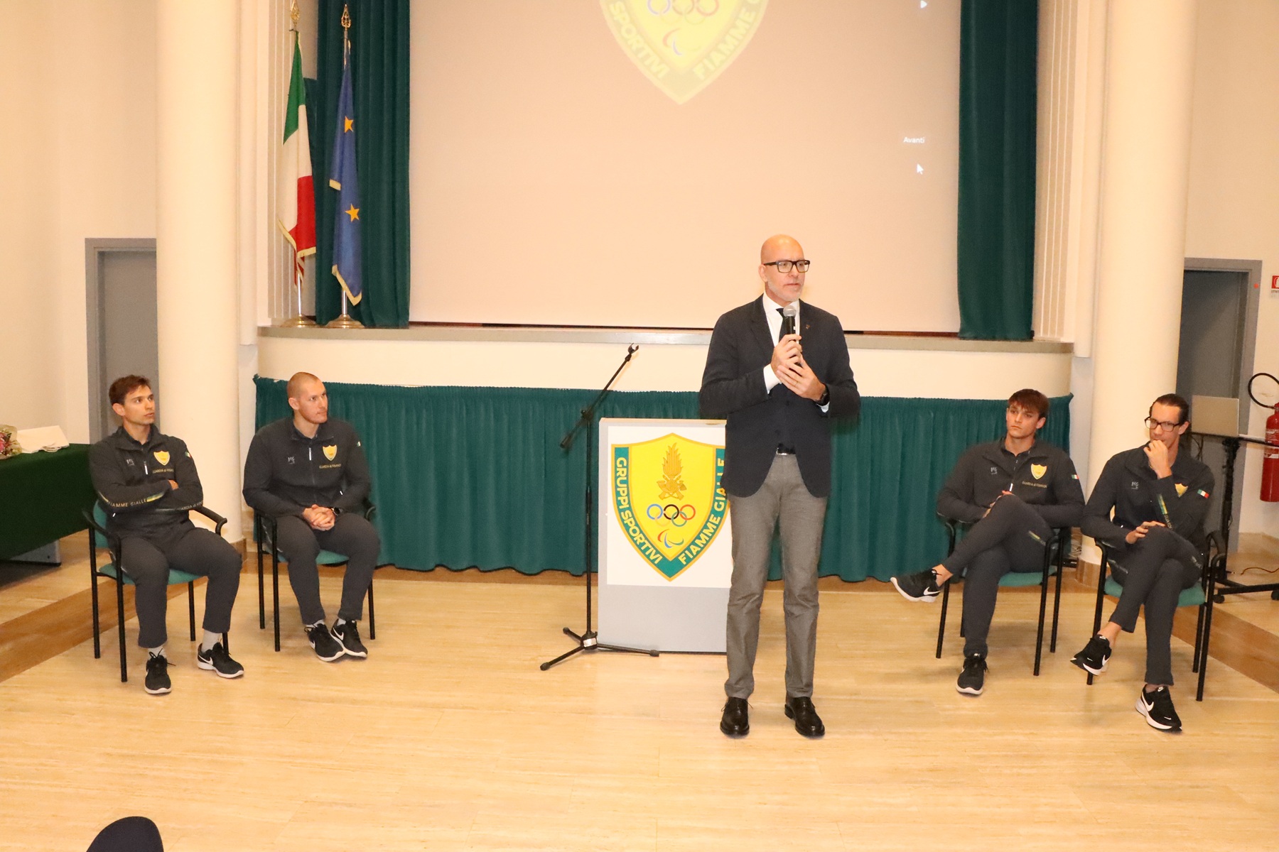 Il Comandante del Centro Sportivo, Gen. D. Antonio Marco Appella nel suo intervento ha ricordato il rapporto di amicizia che lo legava personalmente al presidente Tizzano e ha evidenziato come le due istituzioni, Federazione e Guardia di Finanza, lavorano insieme per il raggiungimento dello stesso obiettivo, sottolineando come il risultato ottenuto da Giacomo, Andrea e i due Luca sia la riprova di questa sinergia.
