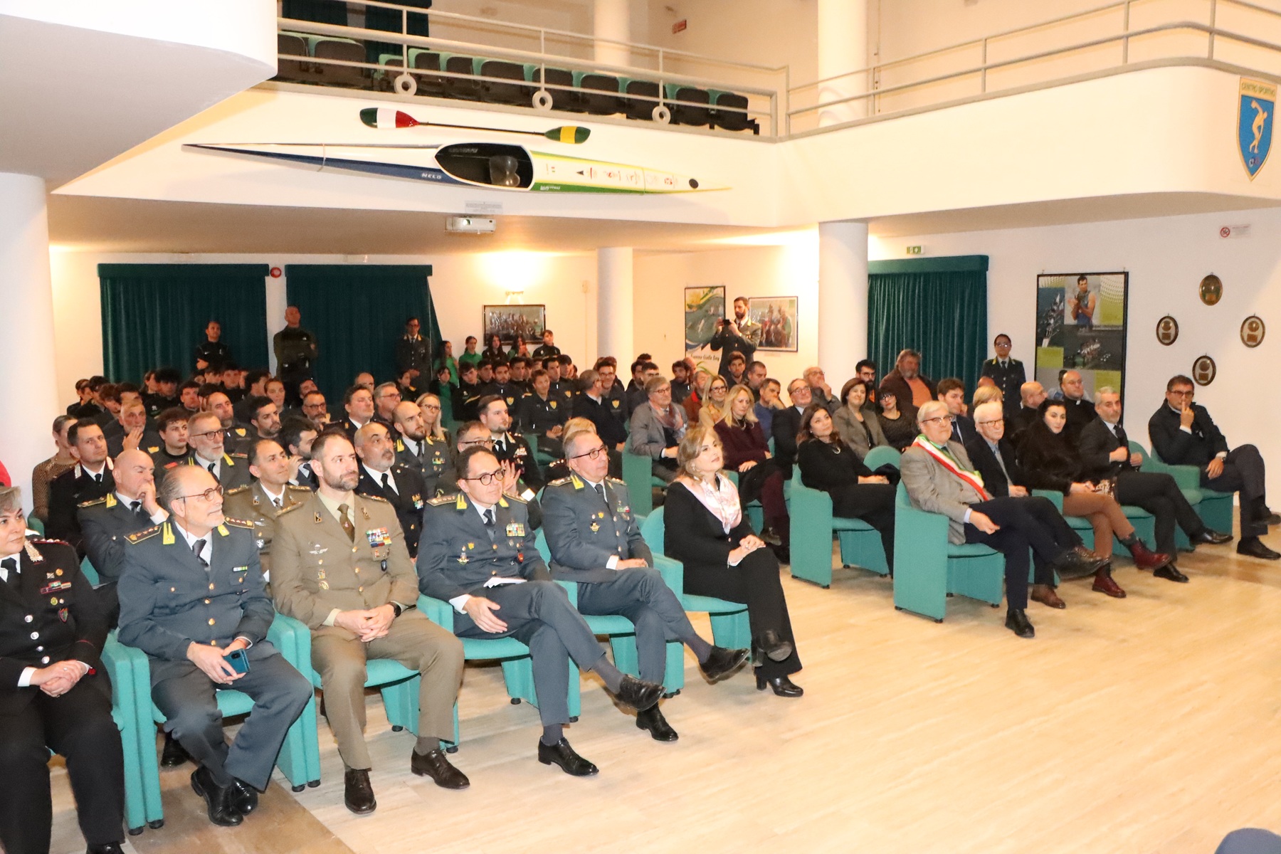 Il Prefetto di Latina Vittoria Ciaramella ha sottolineato come le Fiamme Gialle siano un riferimento non solo dal punto di vista sportivo ma anche dal punto di vista umano e si è soffermata sull’importanza simbolica di celebrare questa vittoria proprio all’interno del Teatro intitolato a Filippo Mondelli, loro compagno di barca per l’oro mondiale del 2018, e di come questo sia il giusto riconoscimento alla sua memoria.
