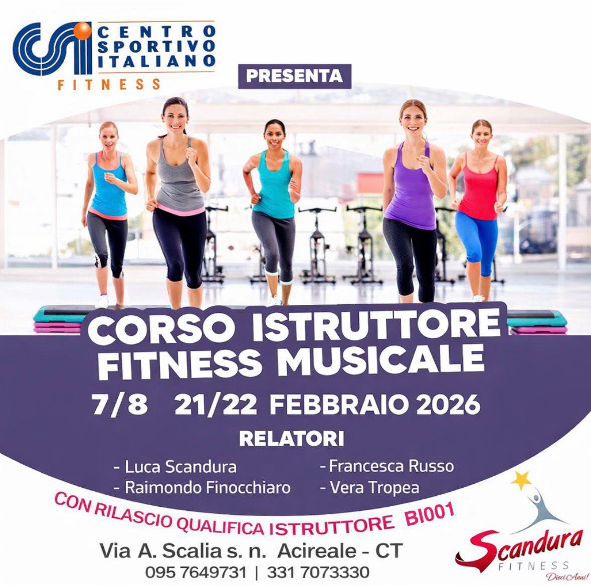 Esiste così la possibilità di conseguire il titolo di istruttore fitness musicale, grazie all’iniziativa promossa da “Scandura Fitness-Nati per Muoverci” di Acireale in collaborazione con Csi (Centro Sportivo Italiano) di Acireale diretto da Alessio Paradiso.