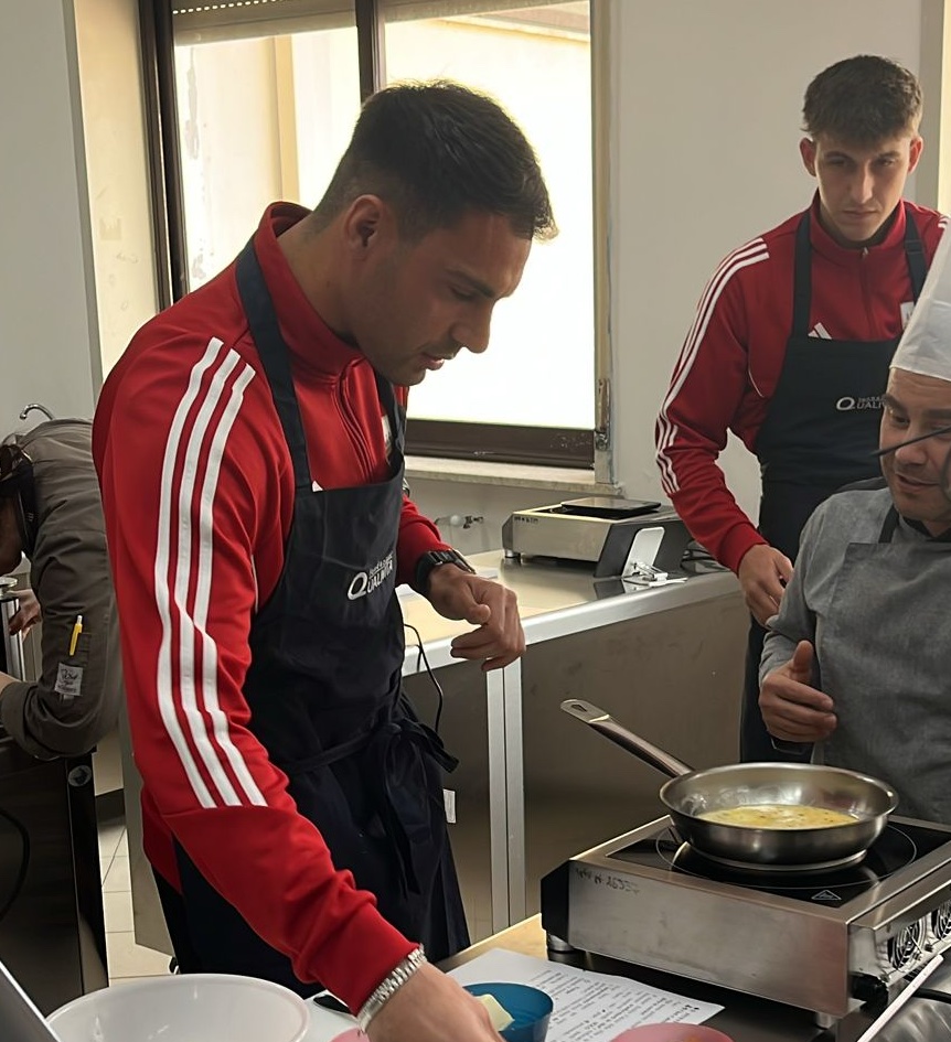 Dalla parola ai fatti: i giallorossi hanno indossato il grembiule e si sono messi ai fornelli nei laboratori enogastronomici del plesso di viale Giostra. Guidati dai docenti, hanno preparato un’omelette, metafora perfetta di una salvezza che richiede ingredienti giusti e lavoro di squadra.