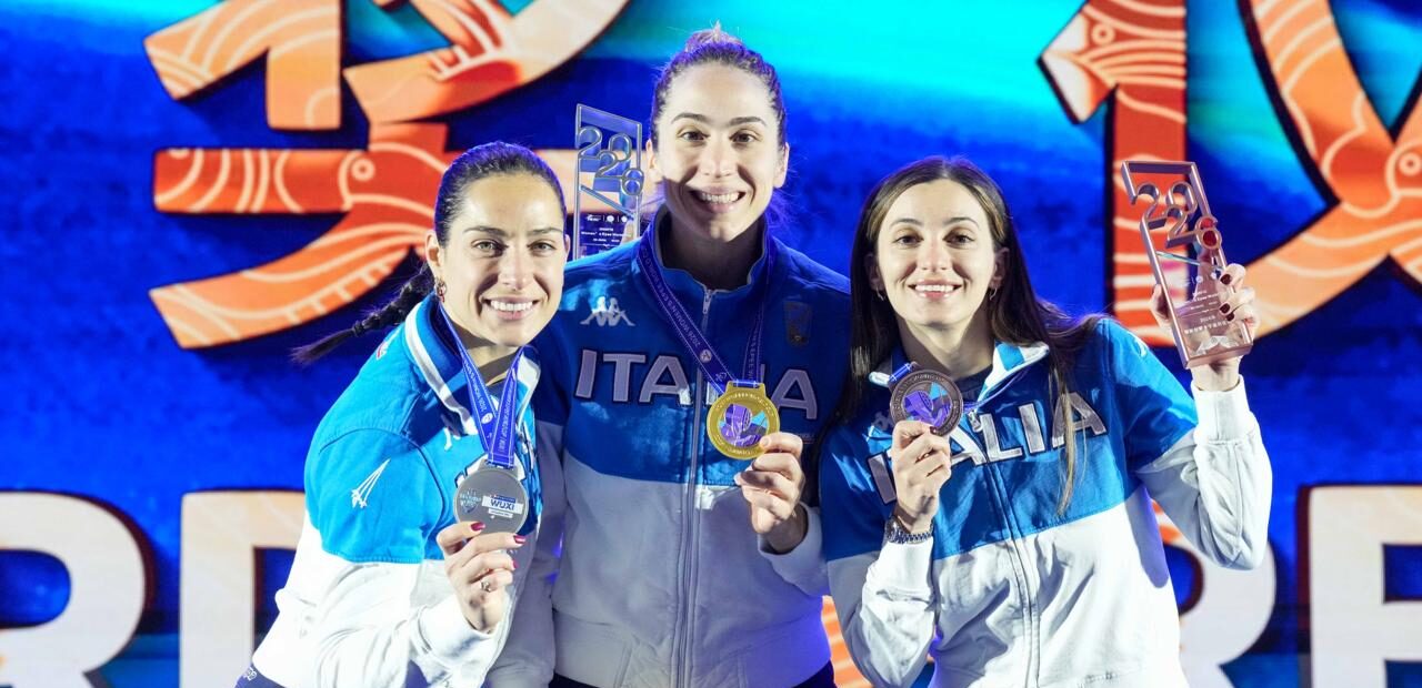 L’Italia della spada femminile oggi in Cina ha scritto una straordinaria pagina di storia: oro, argento e bronzo nella Coppa del Mondo, evento che non era mai successo. Tre spadiste italiane sui tre gradini del podio di un circuito iridato, un trionfo storico che porta nomi e cognomi di queste tre straordinarie campionesse olimpioniche.