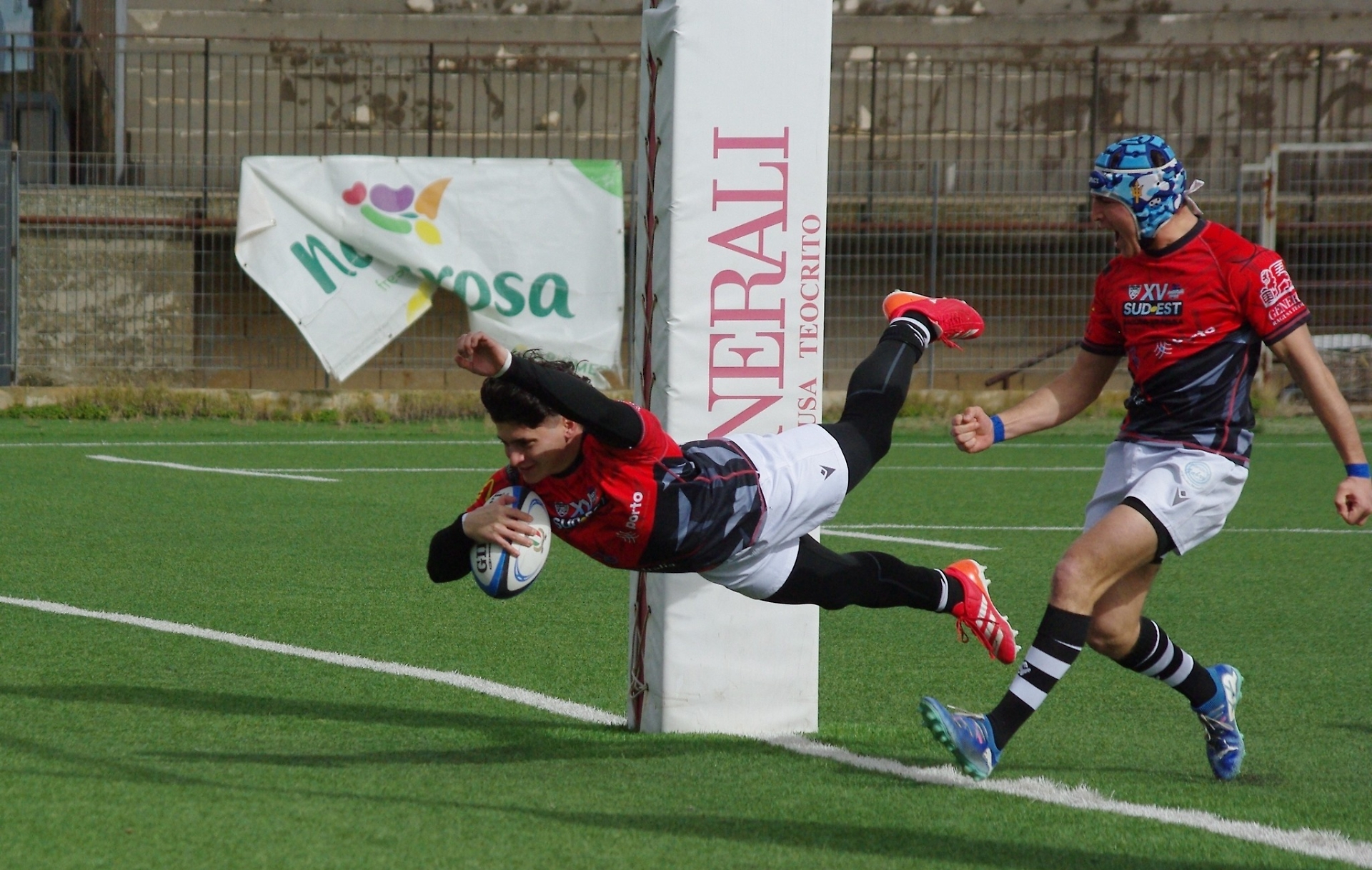 Luca Ponteprimo (Xv del Sud Este), in meta, tra i migliori in campo contro il Bari