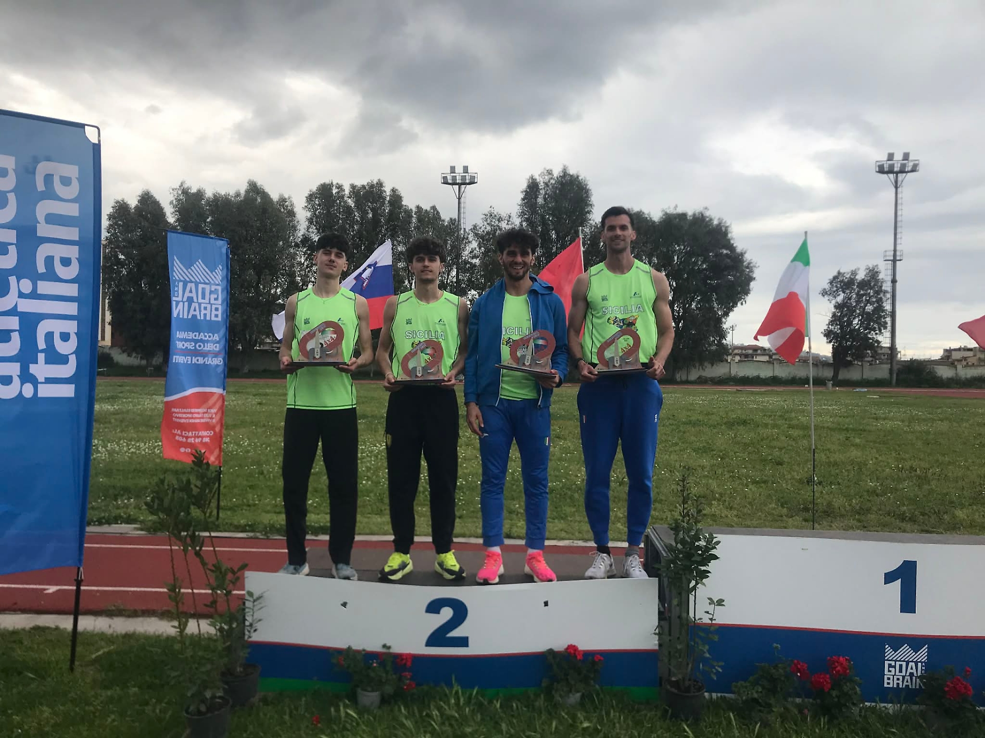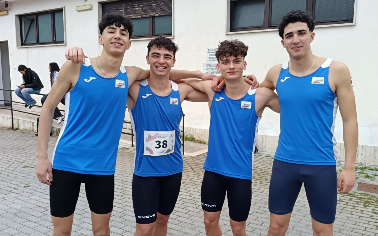 La staffetta 4x100 d'oro allievi della Milone Siracusa: Francesco Toscano, Andrea Giuliano, Isidoro Manzella e Hamza Mirat
