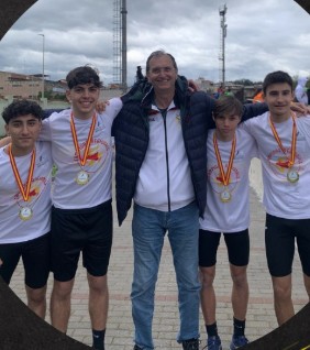 La 4x100 cadetti del Cus Palermo (Gabriele Di Marco, Salvatore Orofino, Gabriele Putano e Salvatore Papplardo) con il tecnico Francesco Siracusa