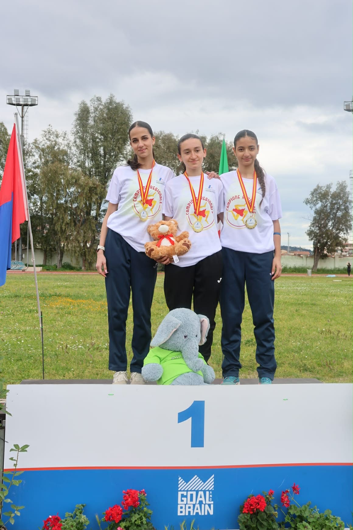Le campionesse e primatiste della 3x1000 cadette dell'Altis Athletics: Maia Pennisi, Alessia Santonocito e Viola Albo