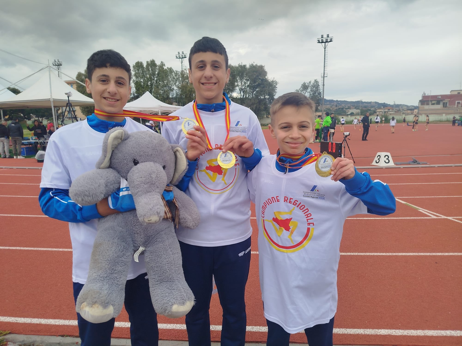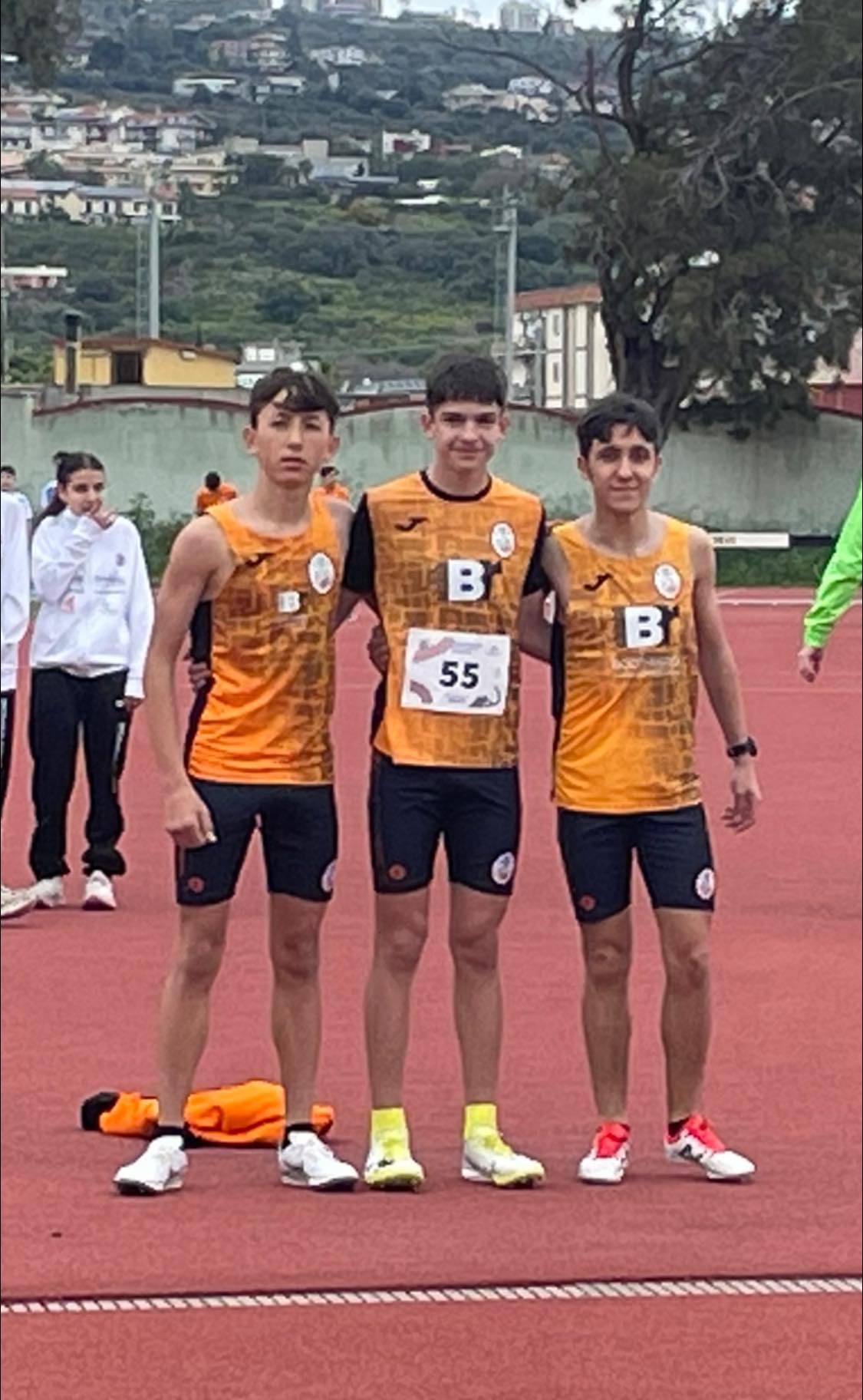 Il campioni della 3x1000 cadetti della Scuola di Atletica Misilmeri: Filippo Pirrello, Gianluca Spallina e Gabriel D'Angelo)