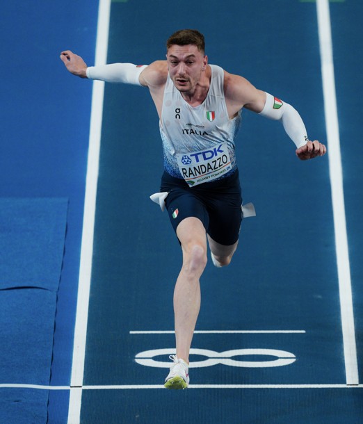 Filippo Randazzo (Fiamme Gialle) in azione sui 60 ai Mondiali indoor di Torun
