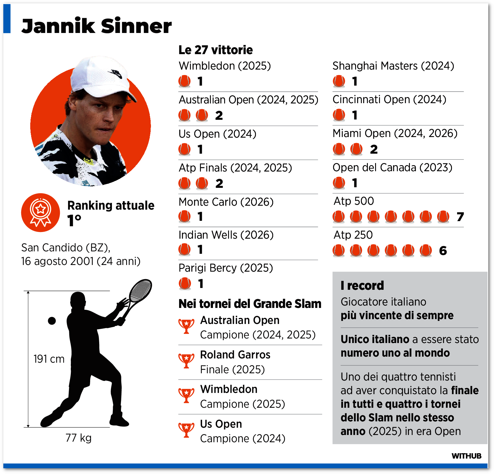 Da domani inizierà la sua 67ª settimana in vetta al ranking, con 110 punti di vantaggio. Nel Principato, dove risiede, l’azzurro ha vissuto giorni quasi impeccabili: «Grazie a tutti, giocare qui mi fa sentire a casa, è come essere in Italia», ha omaggiato il pubblico.