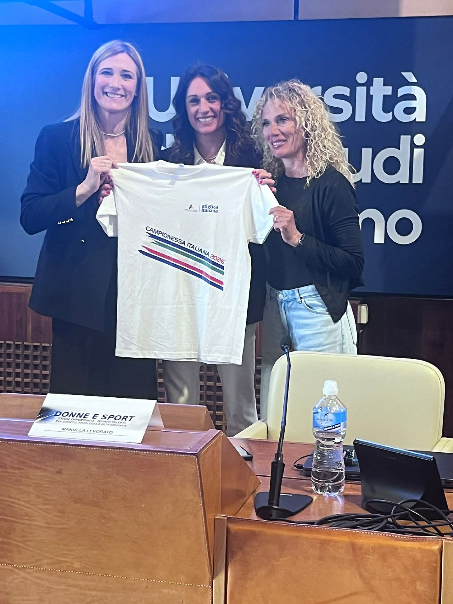 “Il primo convegno a Palermo - continua Manuela Levorato - è stato un successo e ho avuto anche la possibilità di rivedere tante ex atlete che hanno fatto la storia dell’atletica e con loro ho ricordato la stagione 1996 che mi ha visto correre con i colori del Cus Palermo che l’anno prima con capitano Maria Tranchina aveva vinto lo scudetto femminile di atletica”.