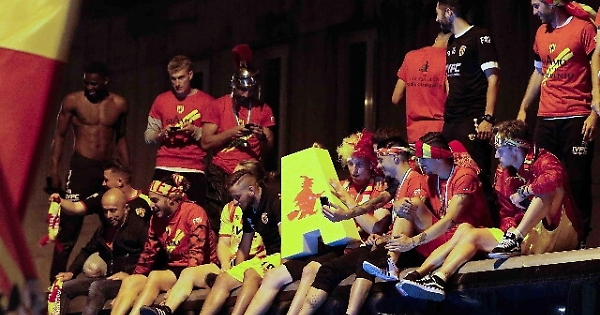 BENEVENTO, 9 GIU - E' stata festa fino all'alba a Benevento: i giallorossi si sono svegliati in serie A, dopo la vittoria di ieri sera contro il Carpi al Vigorito. Migliaia di persone, tra cui moltissimi ragazzini, sono scese in piazza sia in città che nei grossi centri della provincia per festeggiare il successo sportivo del team guidato da Baroni e dal presidente Vigorito. Erano circa le 2 di notte quando il pullman del Benevento calcio ha varcato la centralissima piazza Risorgimento. Diverse centinaia di persone hanno atteso i calciatori. Cori, striscioni, fumogeni giallorossi, hanno accolto gli 'eroi' per una grande festa di piazza. Calciatori e dirigenti della squadra giallorossa si sono intrattenuti nel cuore di Benevento fino a tardi.(ANSA).