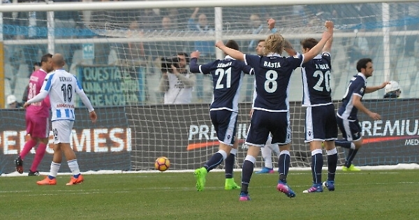 ROMA, 5 FEB - La goleada della Lazio a Pescara, 6-2 con poker di reti di Parolo, è il risultato più eclatante della partite del pomeriggio in serie A, in attesa del big mach di stasera tra Juve e Inter, preceduto dalla sfida disperata Palermo-Crotone. Solo martedì ci chiuderà la 23/a giornata, con Roma-Fiorentina. La vittoria porta i biancocelesti al quarto posto, per ora davanti all'Inter, affiancata anche dall'Atalanta, che ha sconfitto 2-0 il Cagliari. Il Sassuolo vince 1-0 a Marassi sul Genoa e sorpassa i rossoblù, mentre finisce 1-1 tra Empoli e Torino. Pareggio senza reti tra il Chievo e l'Udinese.