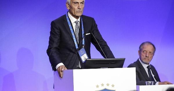 FIUMICINO (ROMA), 22 OTT - Gabriele Gravina, candidato unico alla presidenza della Figc, è stato eletto alla prima votazione dall'assemblea della Federcalcio riunita a Roma, col 97,20% dei voti