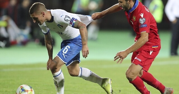 ROMA, 6 SET - Marco Verratti torna a casa. Il centrocampista del Psg, ammonito ieri nella partita con l'Armenia e dunque squalificato per Finlandia-Italia, ha lasciato stamattina il ritiro della nazionale a Erevan per far ritorno al suo club. Gli azzurri voleranno nel pomeriggio in Finlandia, in vista della partita di qualificazione a Euro 2020, in programma domenica sera a Tampere.