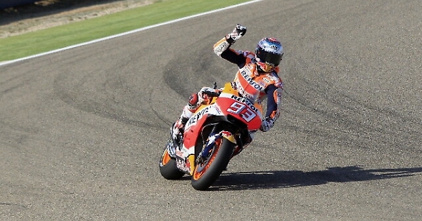 ROMA, 24 SET - E' Marc Marquez (Honda) il più veloce nel warm up di MotoGp, appena terminato sul circuito di Aragon, in Spagna, dove oggi si corre per il 14mo appuntamento del motomondiale. Il pilota spagnolo in 1:48:832 ha preceduto il connazionale A.Espargaro (Aprilia), J.Miller ((Honda Vds) e Maverick Vinales (Yamaha) che oggi partirà dalla pole. Nono tempo per Valentino Rossi sull'altra Yamaha che ha fermato i cronometri staccato di 0.835. Nelle retrovie le due Ducati del leader del Mondiale (in coabitazione con Marquez) Andrea Dovizioso (14mo) e di Jorge Lorenzo (16mo).