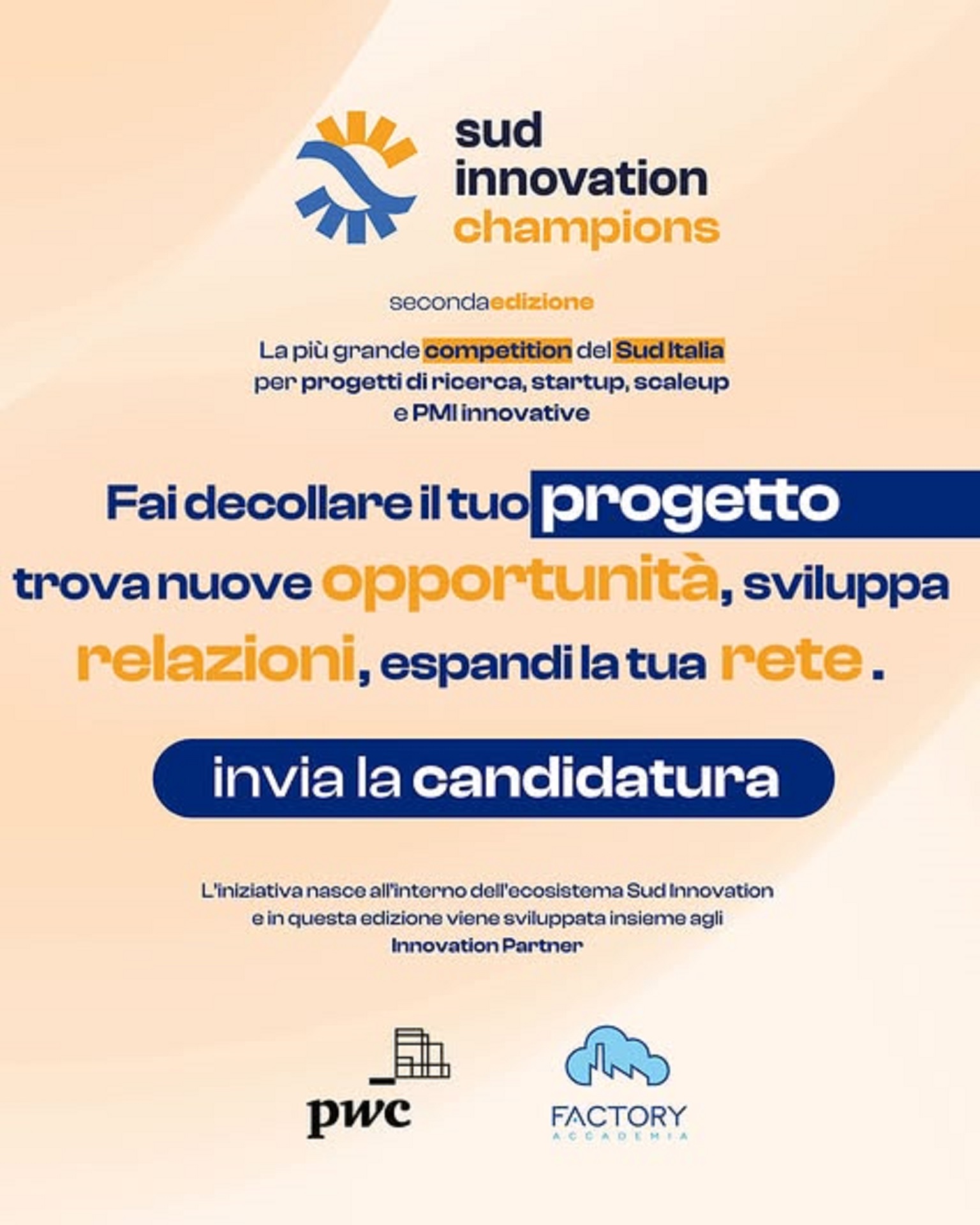“La Champions nasce per far emergere ciò che unisce davvero il Sud: intelligenze distribuite, energie sommerse, progettualità che meritano di essere riconosciute e connesse. Se vogliamo che il Mezzogiorno diventi un sistema capace di generare innovazione su scala, dobbiamo iniziare a pensarci come una rete interdipendente: fatta di nodi forti, ma ancora più forte quando è messa in relazione. La vera sfida non è produrre iniziative isolate, ma generare continuità, visione e impatto condiviso” afferma Roberto Ruggeri, Fondatore Sud Innovation.