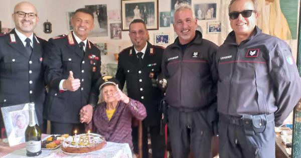 I carabinieri della stazione di Favignana hanno festeggiato il 103esimo compleanno di Rosa Giangrasso, zia Rosina, la più anziana tra gli abitanti delle Egadi. L'ultracentenaria vive da sola e spesso riceve la visita dei carabinieri che vanno a trovarla per assicurarsi che stia bene chiedendo sempre se le serve assistenza. Come ogni anno i militari della stazione hanno deciso di festeggiare il suo compleanno, portandole una torta e dello spumante. Zia Rosina ha potuto così soffiare le sue 103 candeline con coloro che sono ormai il suo punto di riferimento per qualsiasi esigenza.