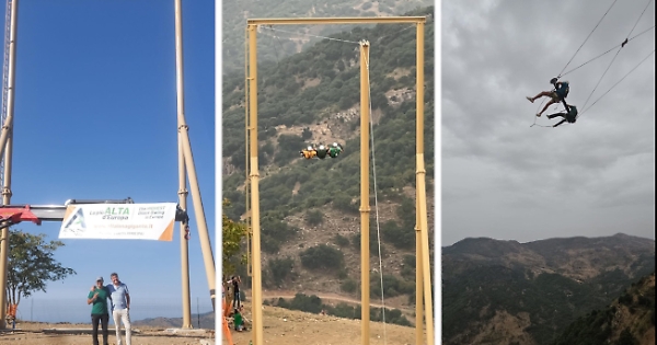 L’altalena più alta d’Europa è stata inaugurata ieri a San Mauro Castelverde, in provincia di Palermo, dalla società che gestisce la Zipline Sicilia. Si tratta di una nuova attrazione, realizzata a pochi metri dalla base di lancio della Zipline, il cavo d’acciaio lungo 1600 metri che consente di fare un salto nel vuoto da un’altezza di 300 metri.