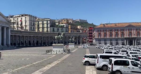 Napoli, sciopero taxi, centinaia di auto occupano piazza Plebiscito