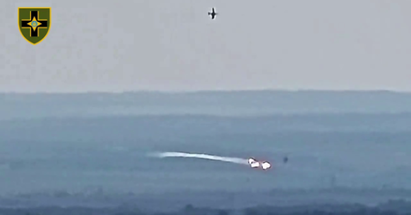 Le immagini mostrano una battaglia nei cieli dell'Ucraina, in particolare a Donetsk. Due caccia bombardieri si affrontano a bassa quota: quello che vola in basso precipita, presumibilmente colpito da un velivolo nemico. Poco prima di impattare contro terra, il jet abbattuto sgancia una raffica di bombe.