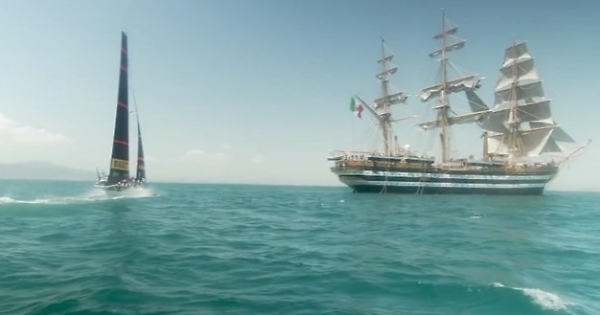 Luna Rossa e Amerigo Vespucci, la "regata" è uno spettacolo
