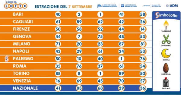 Ecco le estrazioni del Lotto di oggi 7 settembre 2023.