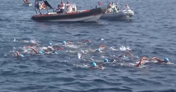 arrivo sulla costa calabrese dello Stretto la Traversata dello Stretto compiuta nel giorno del 50/o anniversario del suo record del mondo sugli 800 stile libero. Calligaris è giunta sulla spiaggia di Porticello per celebrare anche il 75mo anniversario dell’Associazione Atleti Olimpici e Azzurri d’Italia di cui è