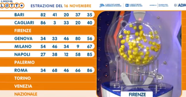 Estrazioni del Lotto 16 novembre 2023