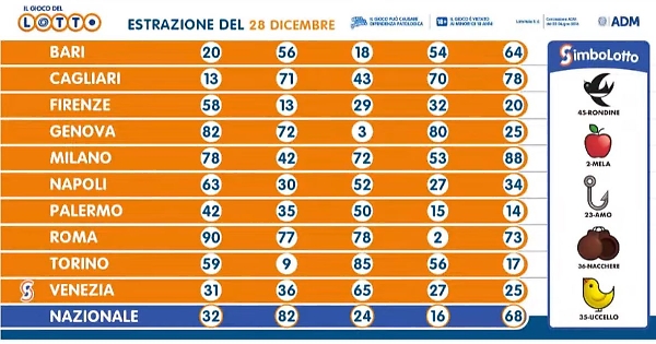 Ecco le estrazioni del Lotto di oggi 28 dicembre 2023: