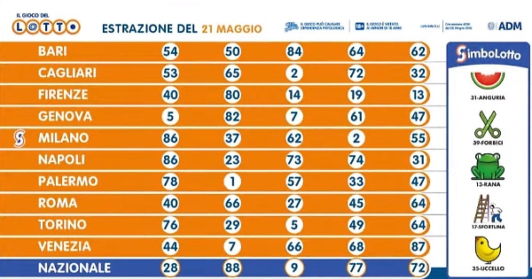 Ecco le estrazioni del Lotto di oggi 21 maggio 2024