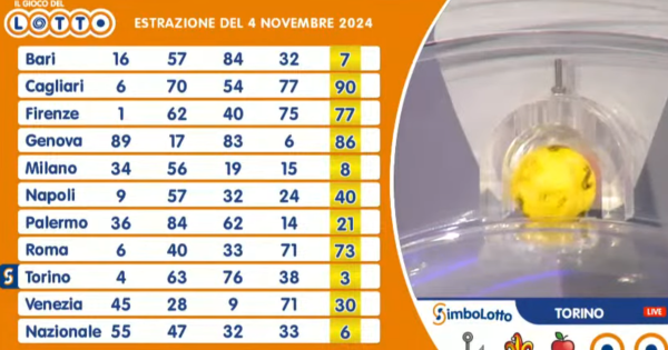 Lotto, 10eLotto e Superenalotto: le estrazioni e le quote del 4 novembre 2024