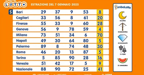 Ecco le estrazioni del Lotto di oggi 7 gennaio 2025
