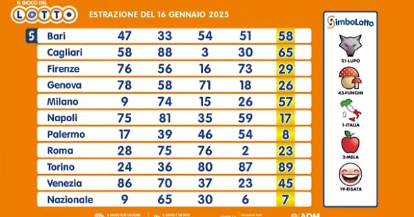 Ecco le estrazioni del Lotto di oggi 16 gennaio 2025: